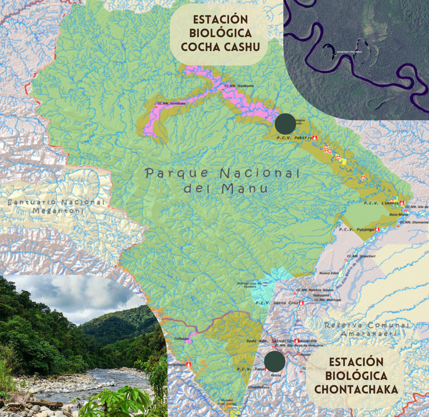 de amortiguamiento del Parque Nacional del Manú . - La Estación Biológica de Cocha Cashu, situada en el corazón del Parque Nacional del Manú, una de las áreas más biodiversas del mundo.